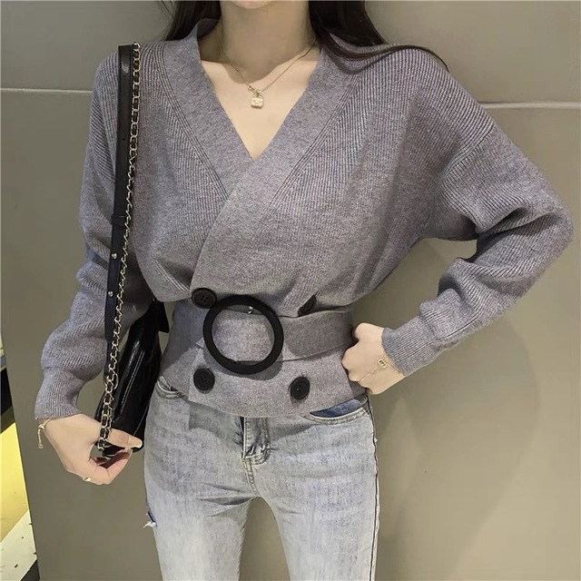 韓国秋冬新作、v字ネック、クールでお洒落な長袖トップス♡ 【カラー】グレー、黒 【サイズ】 S M L 着丈 バスト S 51 102 M 52 106 L 53 110