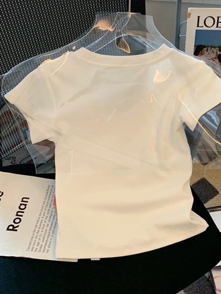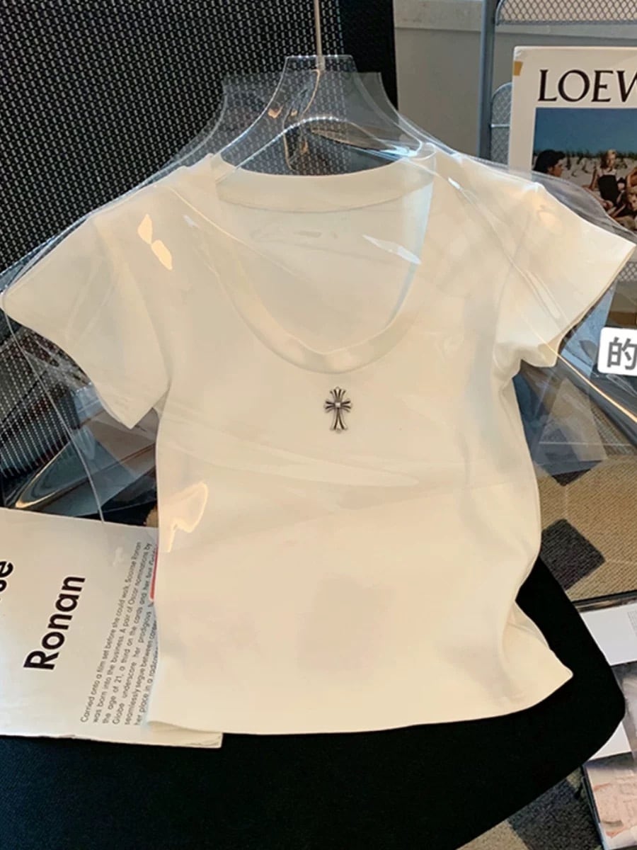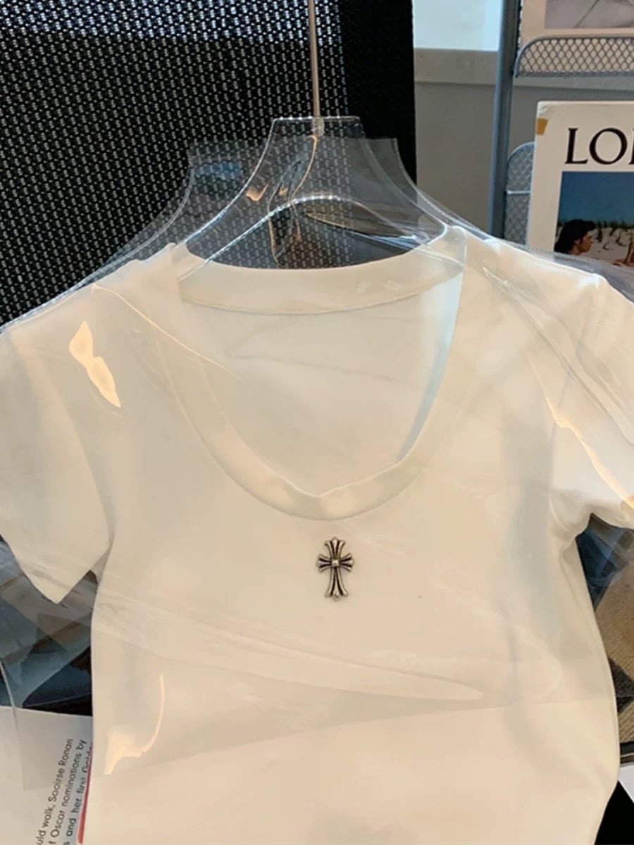 フロントにクロスデザインが施されたホワイトTシャツ☆