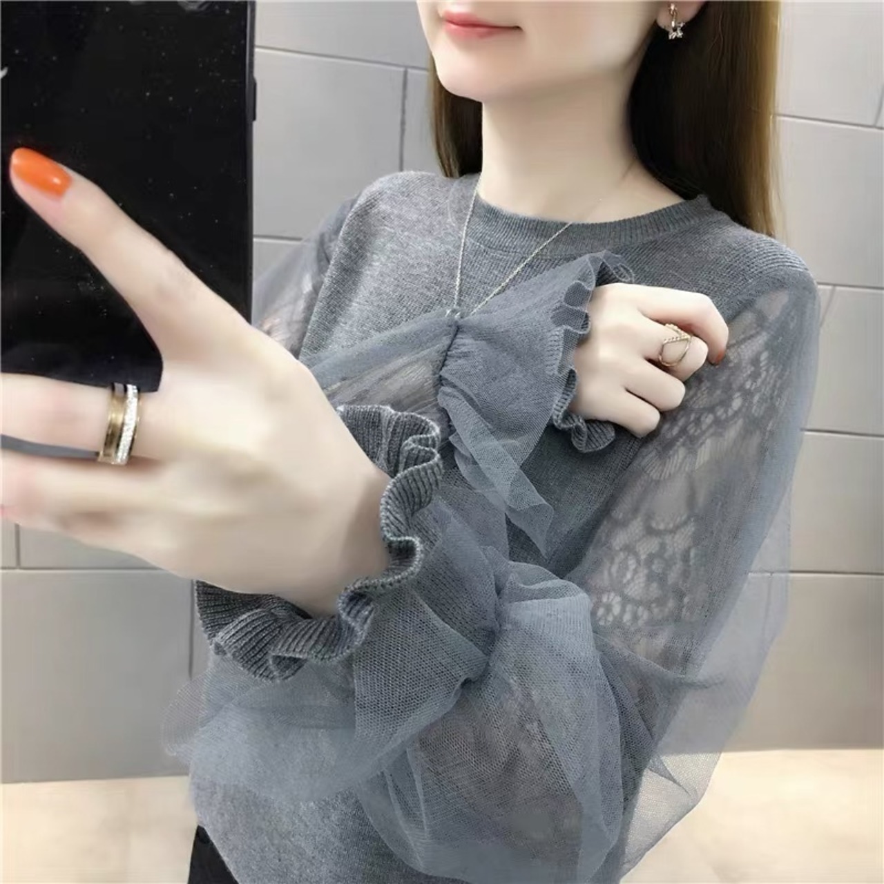 レース袖がお洒落なトップス