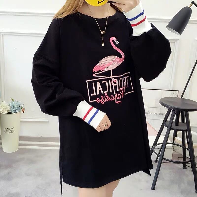 韓国Style、フラミンゴの絵柄が可愛いゆったりとトレーナー♡