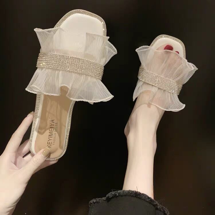 キラキラストーンが輝くシンプルで可愛らしい夏サンダル♬ぺったんこで足元楽チンでお勧めです!!