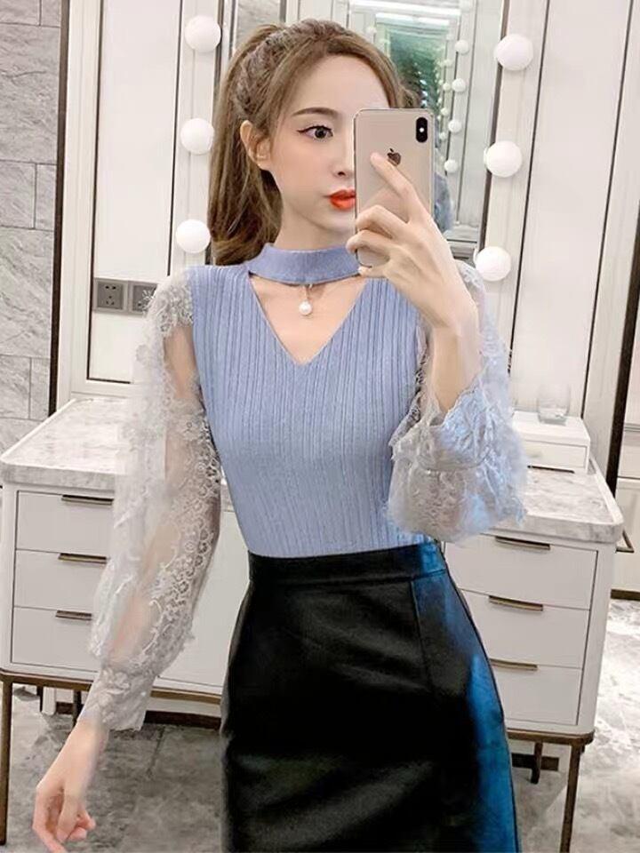 袖のレースの透け感がsexyな薄いニットセーター♬カラー全部で5種類♬お好きなお色をお選びください!!