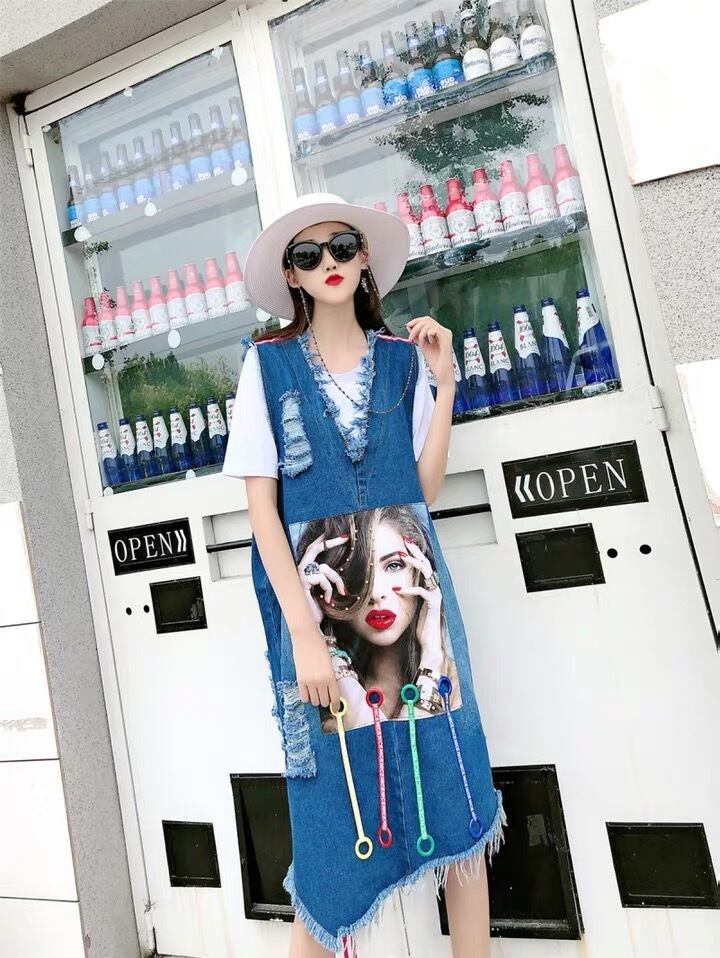 女性の写真がプリントされた、お洒落デニムワンピース♬Popカジュアルなイメージです♬