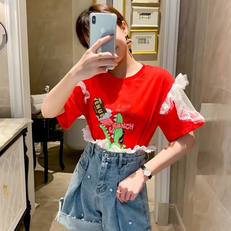 ワニの絵柄レースのTシャツ♡