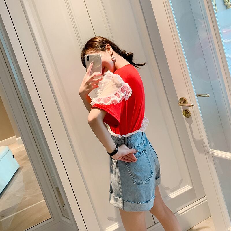 ヒラヒラレースが女の子っぽく可愛いTシャツ♬