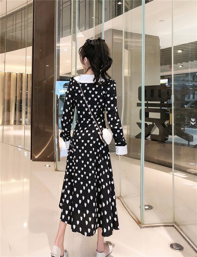 韓国新作デザイン♪ピーターパン襟のハートロット柄が可愛いロングドレス♡ボタンはパールになっています♡