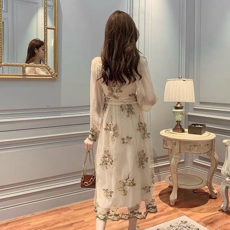 上品な花刺繍がゴージャスなレース素材のロングワンピース♬