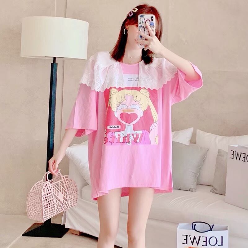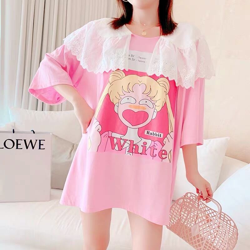 原宿系ファッション、アニメデザインプリントの可愛らしいトップス♡