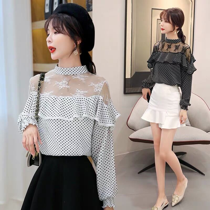 ロット柄で透け感あるレースが可愛らしいブラウス♬