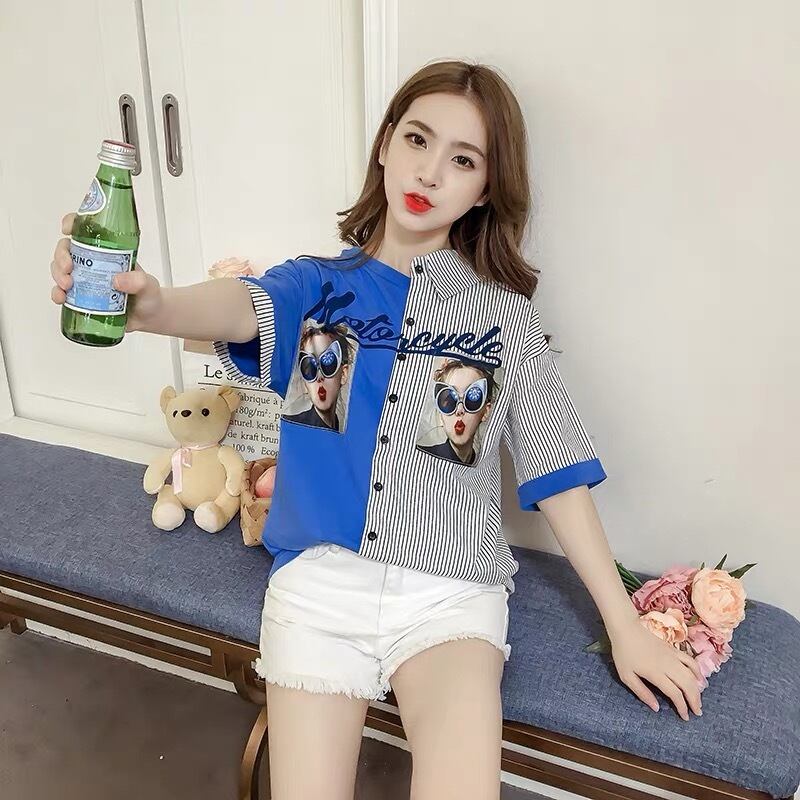 原宿ファッション、半分Tシャツ、半分シャツの変わったデザイン♬