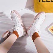 優しい色味が可愛いハイカットスニーカーです。