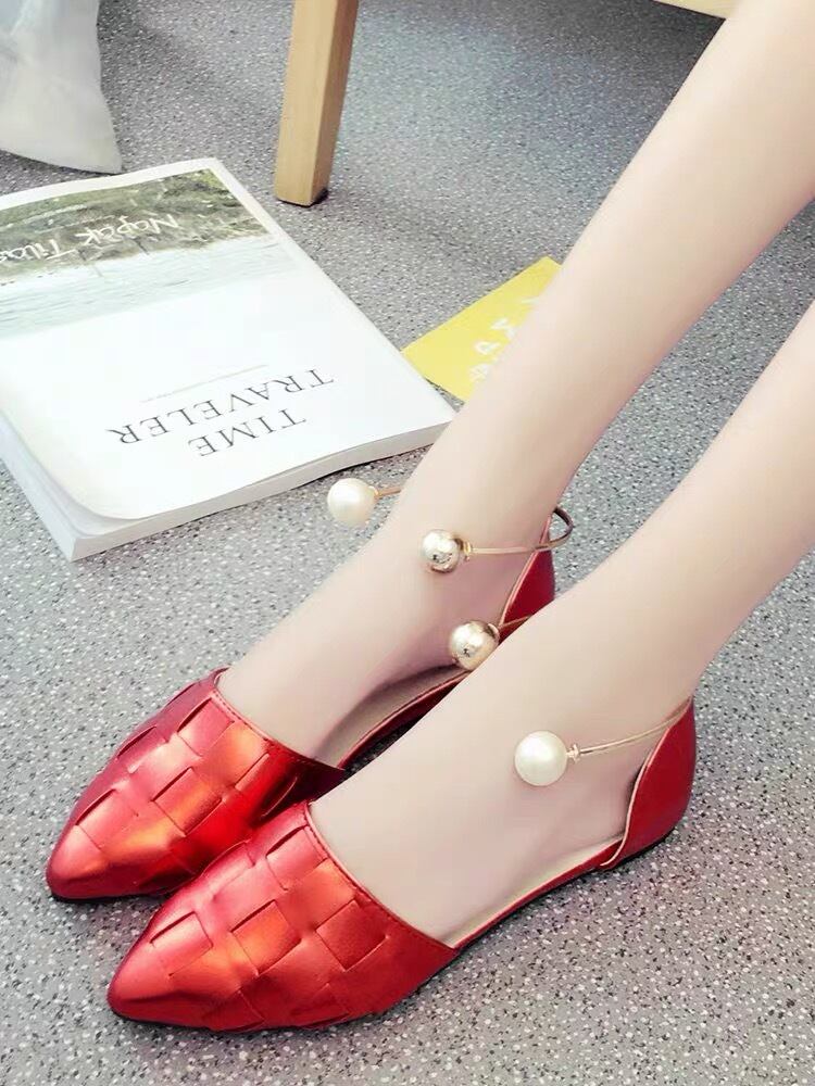 鮮やかカラーと足首パールが印象的なパンプスです。