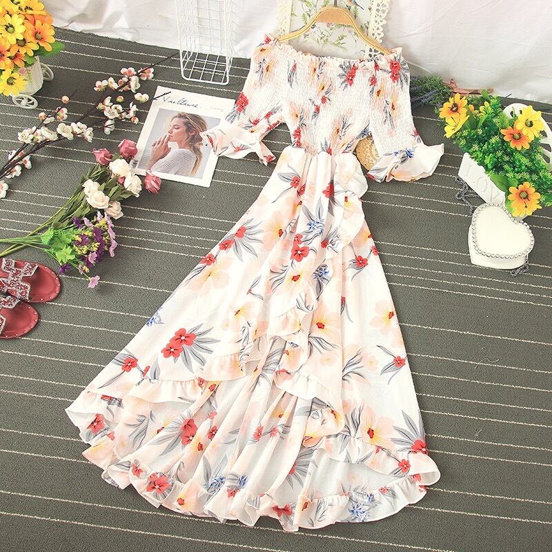 大人らしい、花柄のデザインに段差カットになったおしゃれロングドレス♪