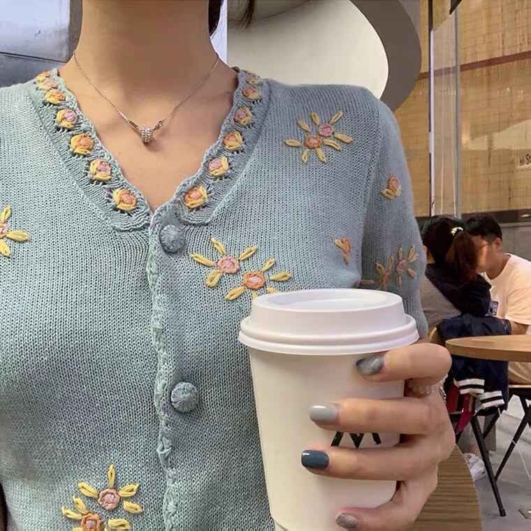 花柄の刺繍がお洒落な半袖カーディガン!!