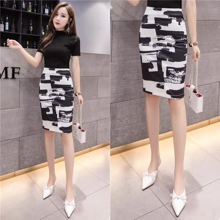 モノトーンデザイン、タイトでボディラインを美しくみせてくれるタイトな膝丈スカート⭐︎