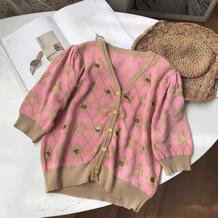 乙女チックなフラワーデザインが可愛いらしいキュートな半袖カーディガン⭐︎