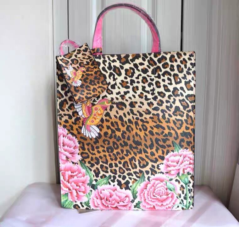 派手可愛ヒョウ柄、薔薇がおしゃれなトートバッグ!!