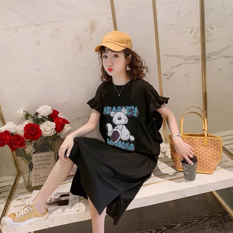 可愛いくまのプリントに袖がフリルになっていて、可愛らしいミディアムワンピース!!