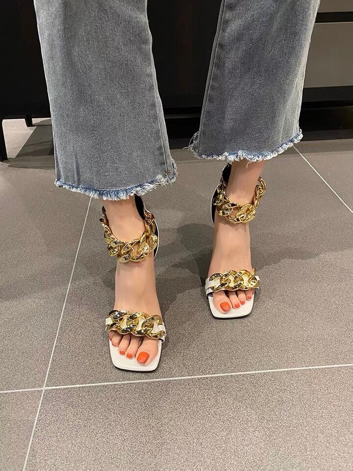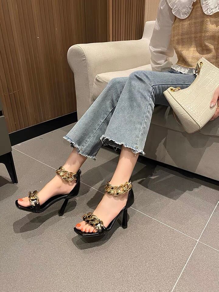 韓国新作、チェーンがインパクトなクールビューティー、ヒールサンダル♪