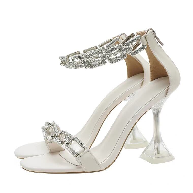 キラキラしたチェーンとヒールがクリアで可愛いらしいお洒落なサンダル♪