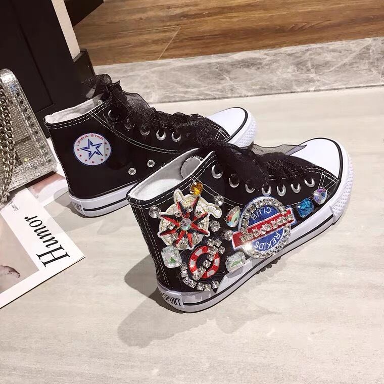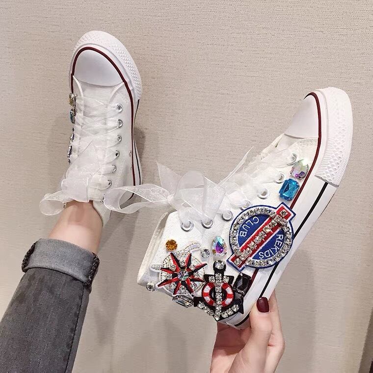 派手可愛好きな方にお勧め、コサージュが沢山ついたお洒落ハイカットスニーカー!