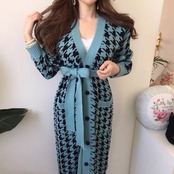 秋新作♪大人気千鳥柄のロングカーディガン♪