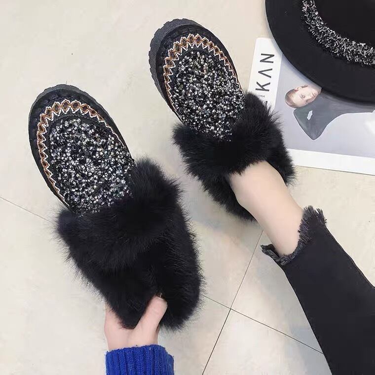 キラキララメが可愛い!!ふわふわの毛のムートンスニーカー♪フラットで足元楽チン♪