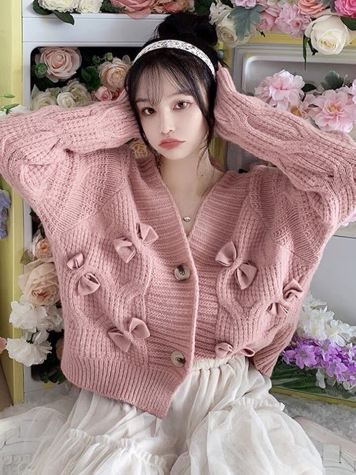 たくさんのリボンが付いた、可愛らしいニットカーディガン!!