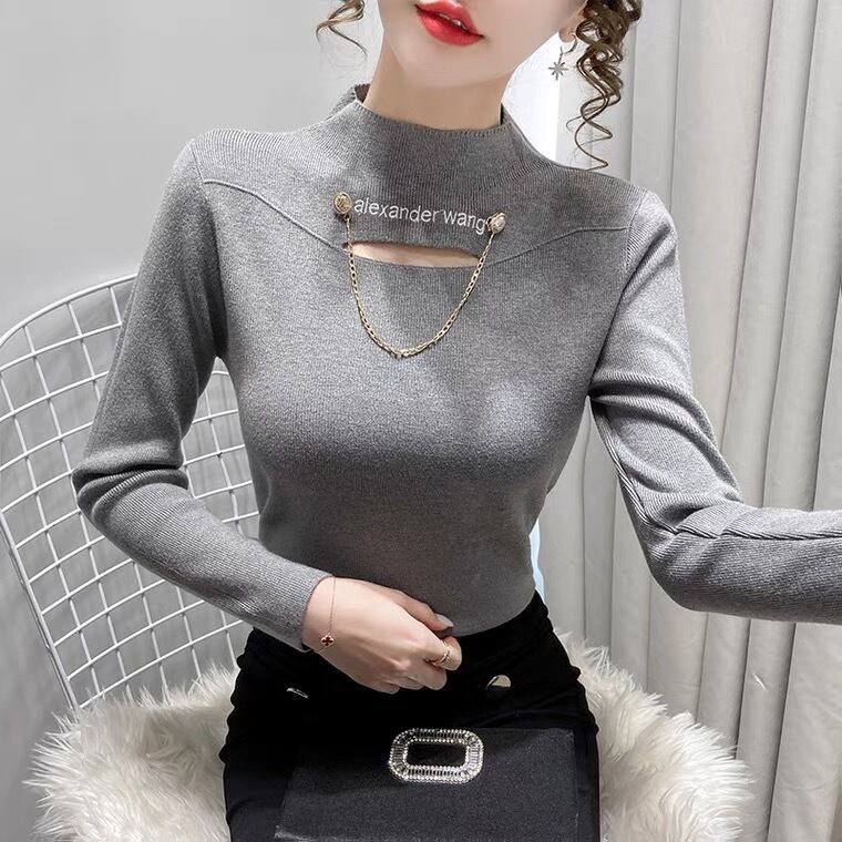 韓国大人気デザイン、シンプルに胸元チェーンのアクセがワンポイント♪