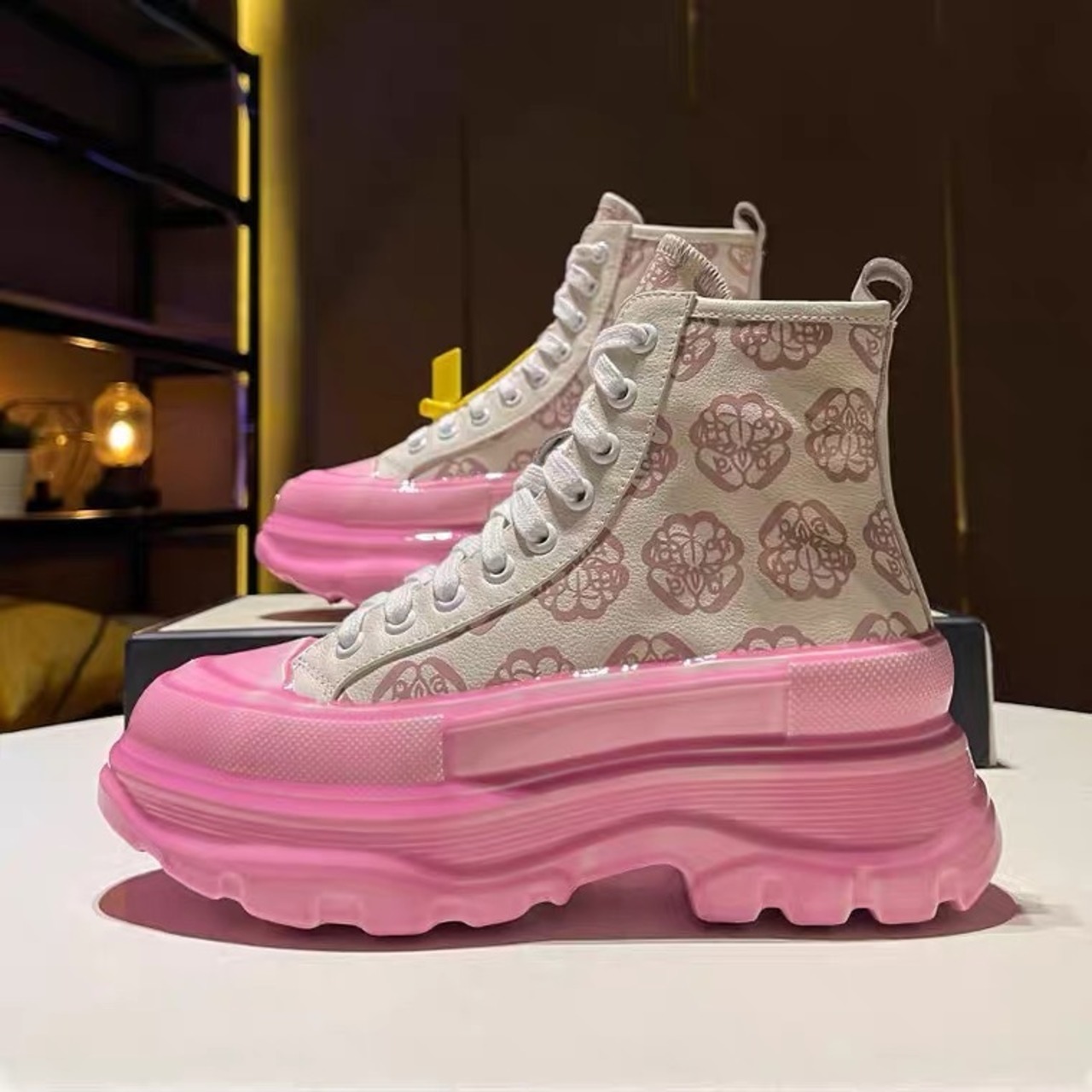 韓国Style花柄厚底スニーカー