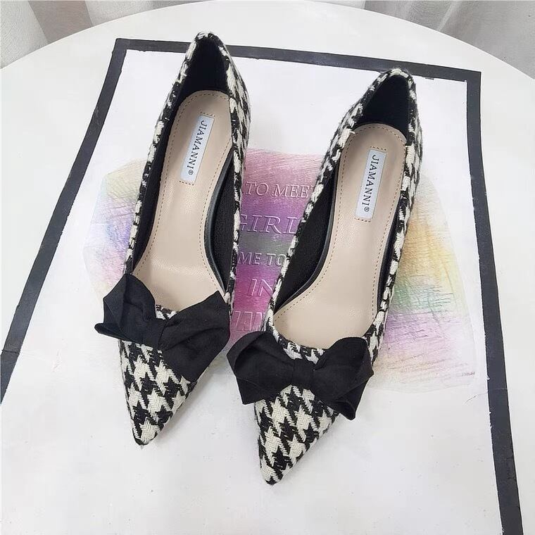 大人気千鳥柄のリボンがキュートなフラットパンプス!!