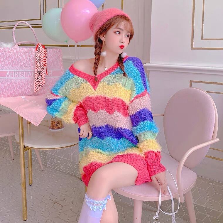 韓国デザイン!カラフルで明るいカラーの可愛らしいニットセーター♡