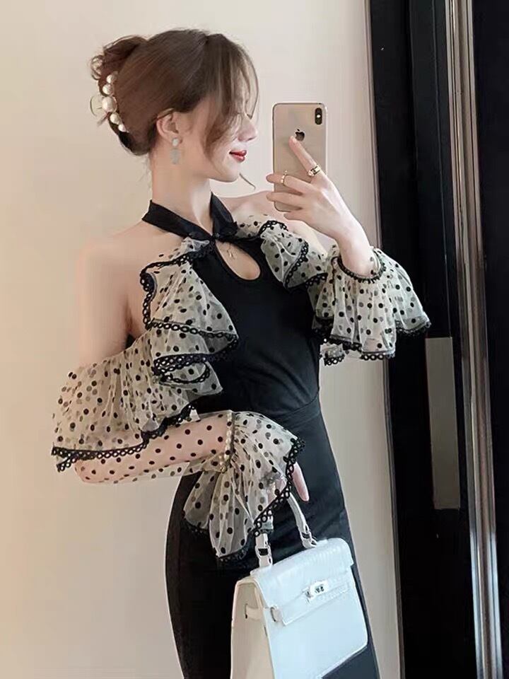 韓国春夏Newデザイン、水玉模様のレースにタイトなセクシーワンピース♪