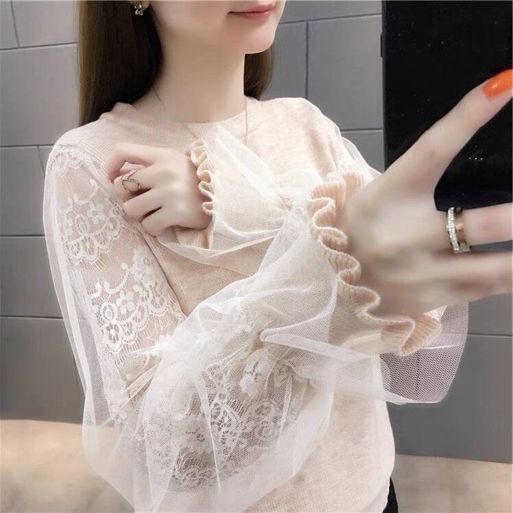 大人気ふわふわのレース調袖が可愛らしい薄ニットトップス♡春にぴったり♪