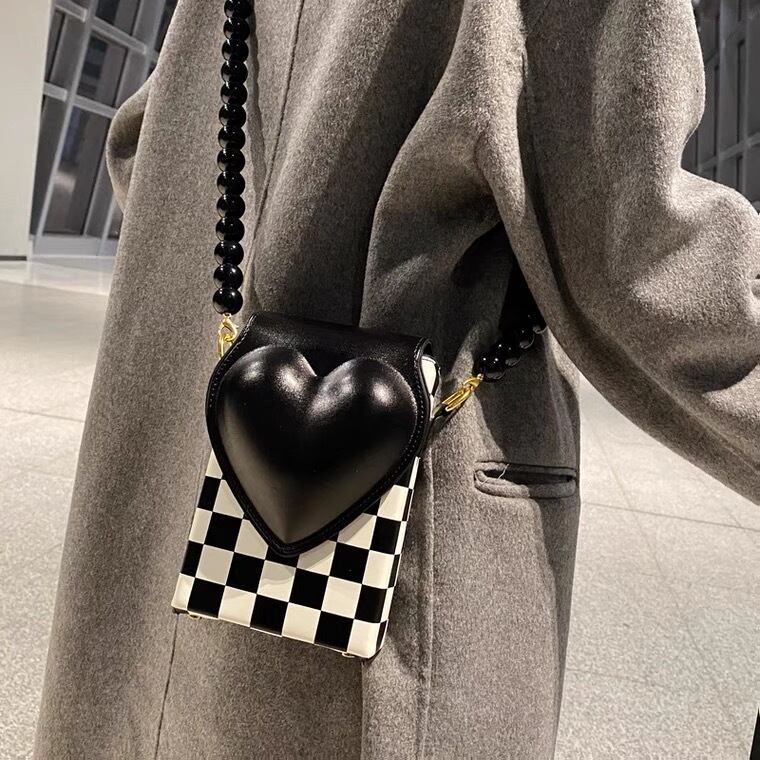 大きな丸玉のチェーンとハートがワンポイントのショルダーバック!!