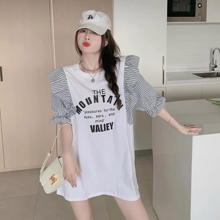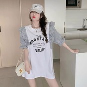 韓国春新作、ストライプ袖と英字プリントのカジュアルトップス♡