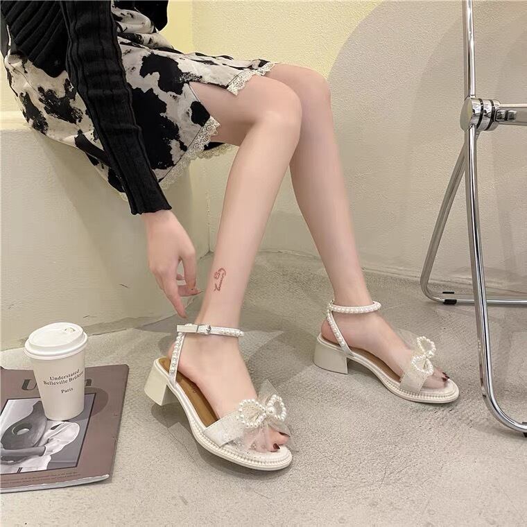 パールリボンとレースが女の子らしい可愛い、夏サンダル♪
