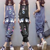 カラフルな刺繍とダメージ加工でとってもお洒落なデニムオーバーオール!!春夏お勧めです⭐︎