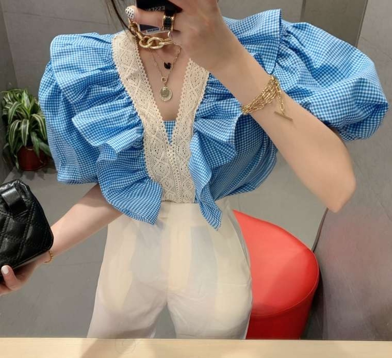 春新作、ギンガムチェックとヒラヒラのデザインが可愛いらしい春なはぴったりなブラウス♡