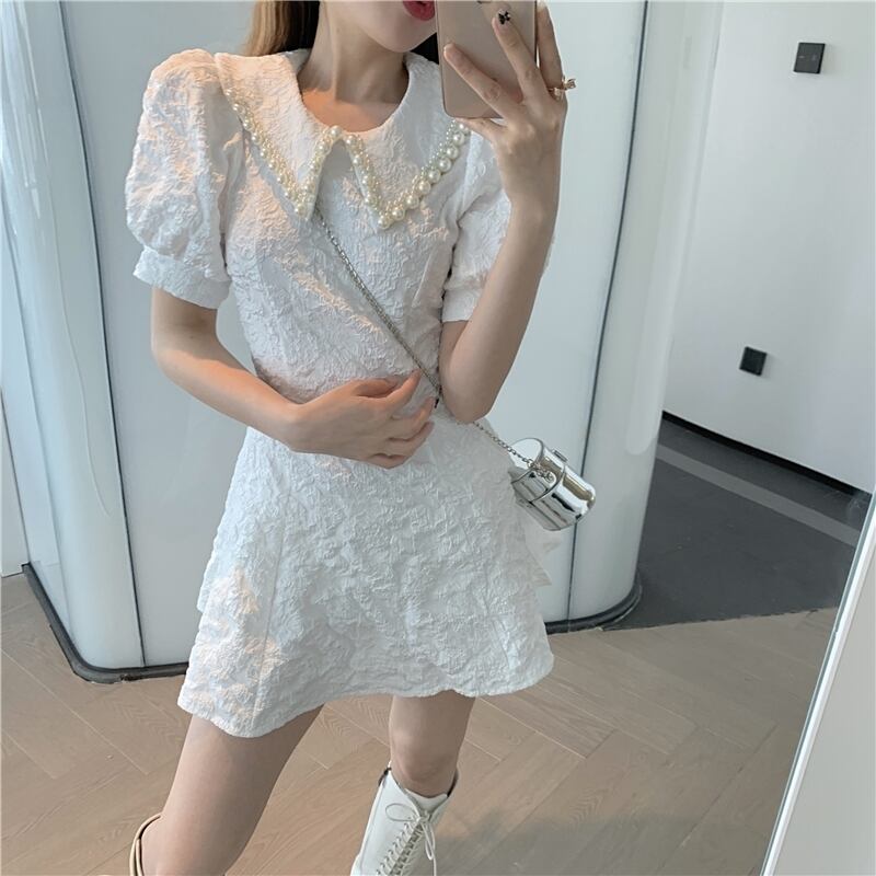 襟にパール、ストーンが付いていてとても、華やかなワンピースです!