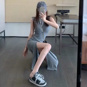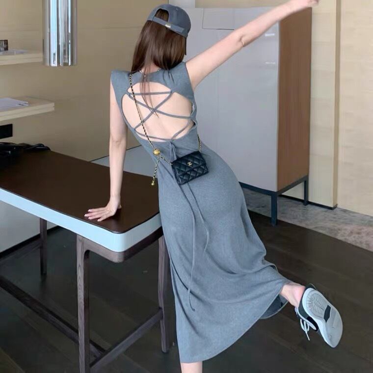 韓国Style、背中がオープンでセクシーなタイトワンピース、サイドにスリットも入っています♪