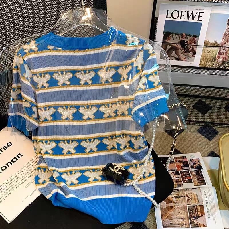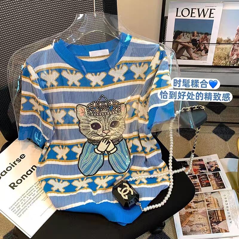 猫の刺繍のが可愛い半袖ニットトップス♡