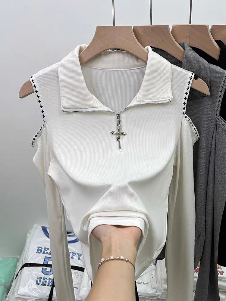 十字架ワンポイント、肩見せセクシーな長袖トップス♡