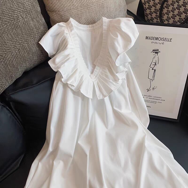 フリフリのフレアの襟元がキュートなカジュアルワンピース♡真っ白の色で爽やかワンピース!!