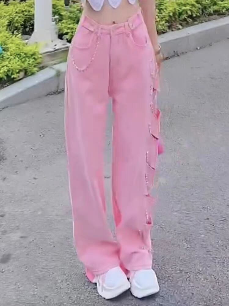 ラブリーなピンクカラーにダメージ加工のパンツ♡