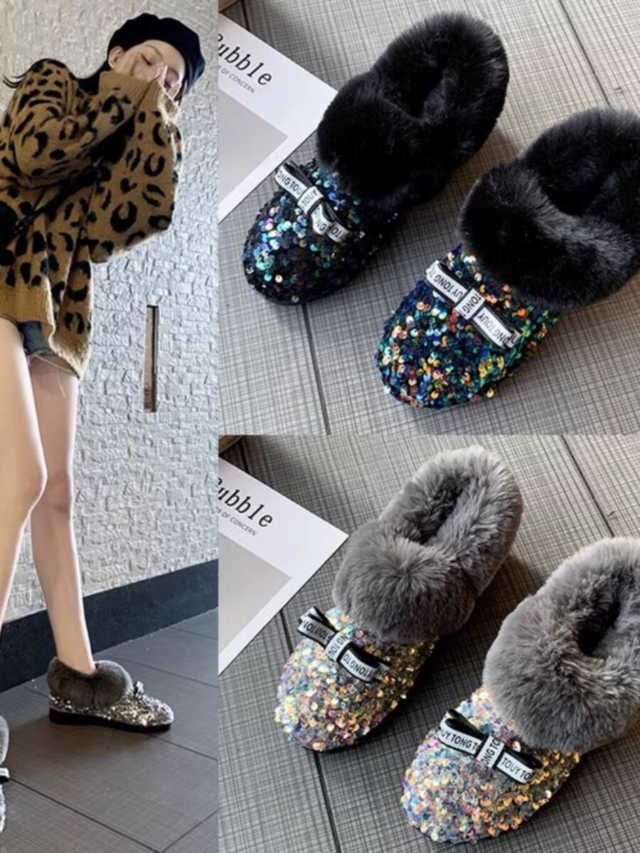 キラキラが目立つショート丈のムートンブーツ⭐︎